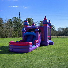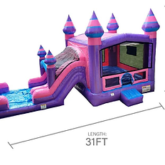 PurplePOP Dual Lane Combo (Wet/Dry) brings royal-level fun to any party! Kids can bounce, climb, and race down dual slides for twice the excitement. Use it wet or dry, making it perfect for birthdays, school events, and backyard celebrations. SIZE: Inflated Dimension of 31L x 13W x 15H